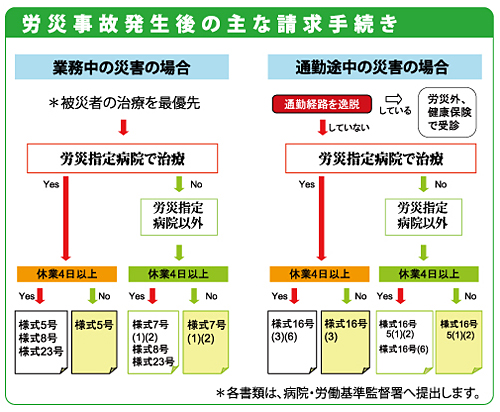 *労災事故後の関係機関への届出事務は、事業主が行ってください。(労働保険事務事務組合では法律上、お手続きの代行はできません。)
