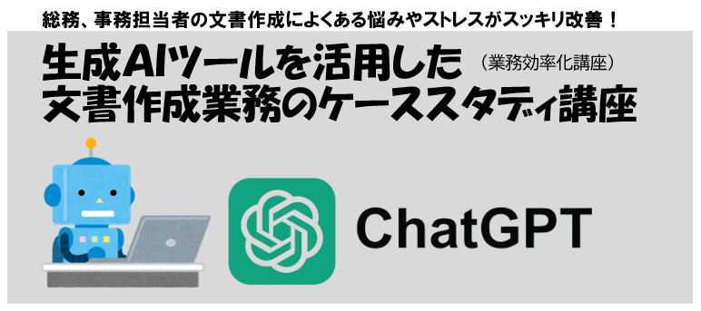 今回の講座では生成AIツールを活用した文書作成業務の具体的な実例を説明する内容になります。PC、タブレット、スマホ等を使った操作はありません。