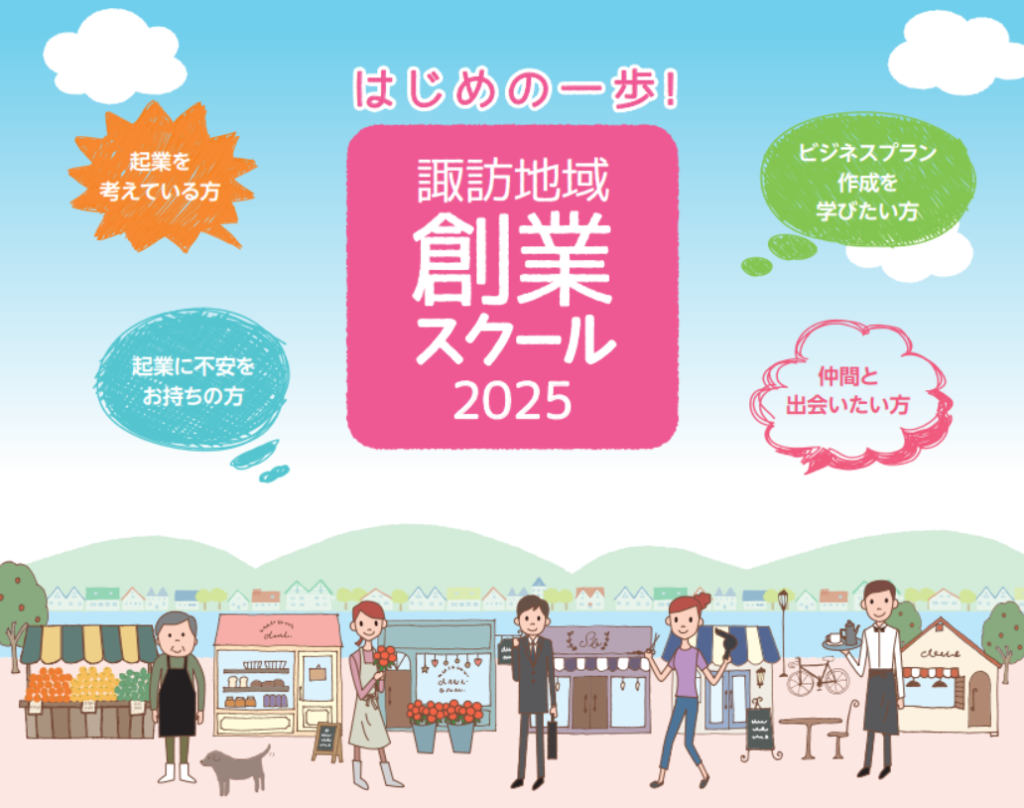 下諏訪町・岡谷市・諏訪市・茅野市が、国から認定を受けた創業支援等事業計画に基づき、第1講~第5講