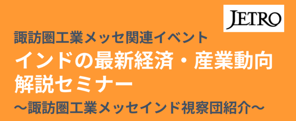 JETRO諏訪支所と諏訪圏ものづくり推進機構が諏訪圏工業メッセ関連イベントとして本セミナーを開催します。
