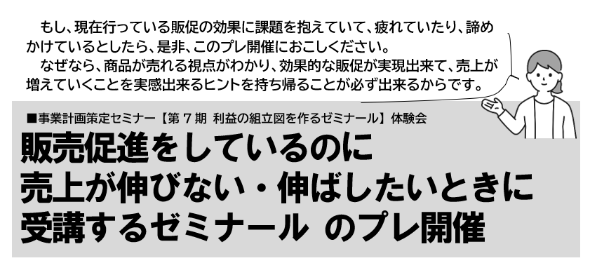 本講座の事業計画策定ゼミ「第7期利益の組立図を作るゼミナール」は下記に開催