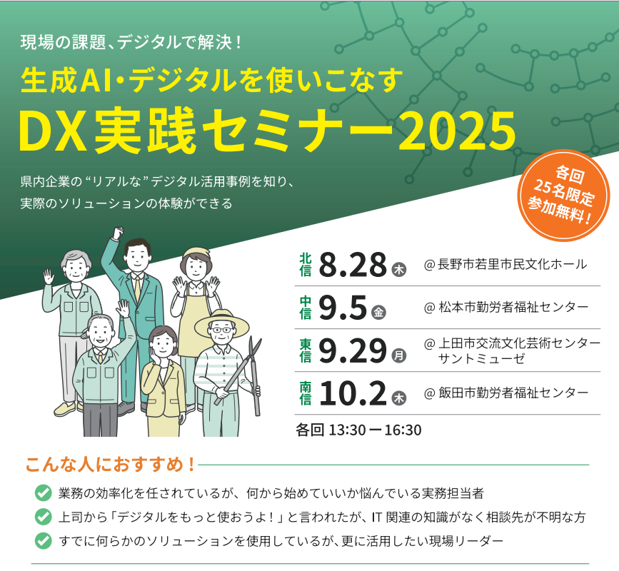 3. 9/5 長野県主催「生成AI・デジタルを使いこなす DX実践セミナー2025」開催のお知らせ